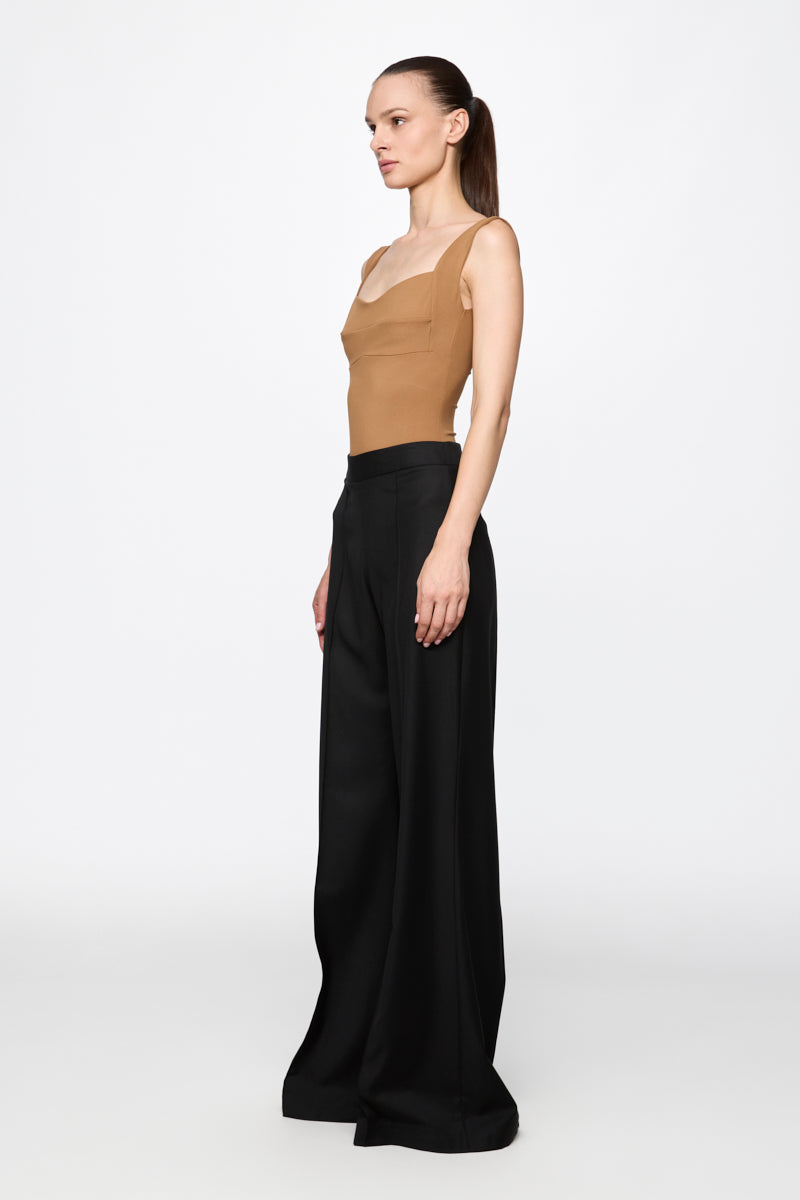 CAMEL corset bra bodysuit made of black shaper fabric.