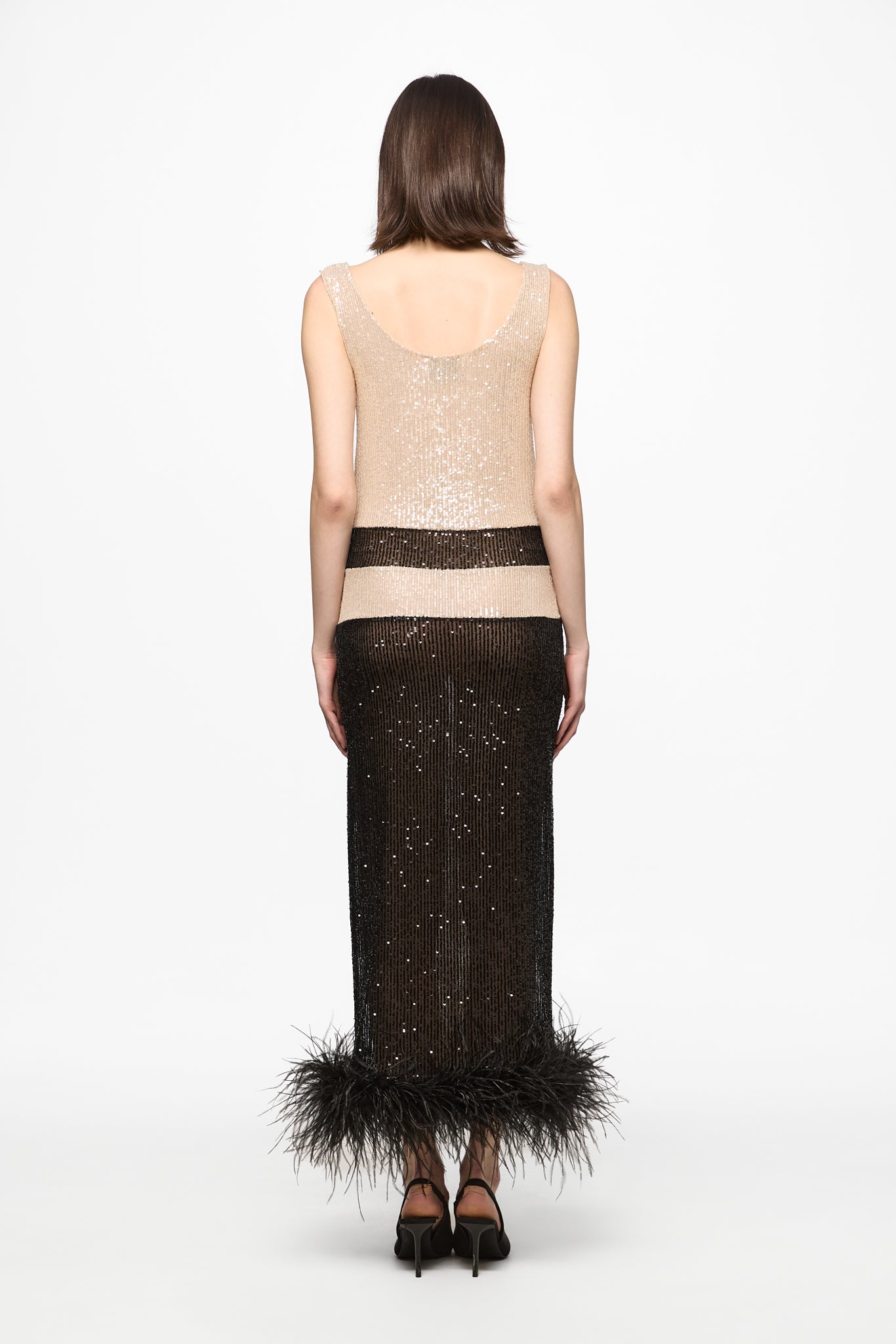 Turtleneck long dress with feather panels